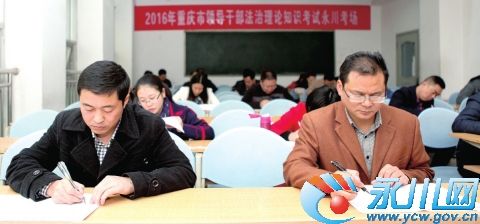 图为领导干部在2016年重庆市领导干部法治理论知识考试永川考场认真答题。 |